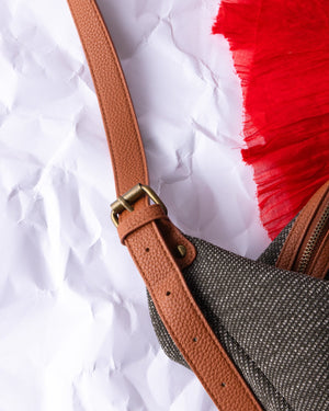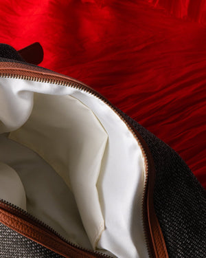 This little purse comes in a neutral color palette. Circular in shape with a short handle, this fun accessory will hold all of your essentials.