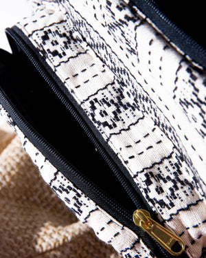 This boho-chic backpack brings carefree, wanderlust vibes with its intricate woven patterns and eye-catching beaded front panel. Designed for both style and function, it features two zippered compartments—a main zip-top closure and a front zip pocket—to keep your essentials neatly organized. Finished with sturdy straps and artisanal details, it’s the perfect companion for markets, travel days, and spontaneous adventures.