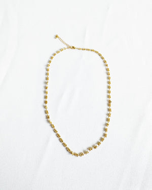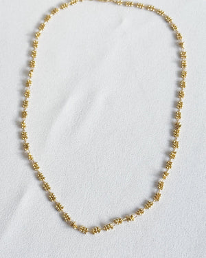 Minimal but full of charm—this golden chain is made of tiny clustered beads that mimic mini blossoms. A sweet touch for your stack or to wear solo.