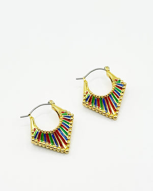 These geometry-inspired hoop earrings turn angles into art, with sharp edges and a sleek ribbed design that’s impossible to ignore. A colorful epoxy finish brings them to life, making every turn of your head a little more vibrant.