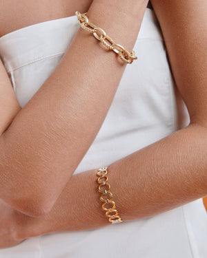 Turn up the shine with this bold 16K gold-plated brass bracelet, where chunky textured and polished links play together in perfect harmony. Equal parts glam and effortless, it’s your go-to piece for adding instant sparkle to any look — day or night.
