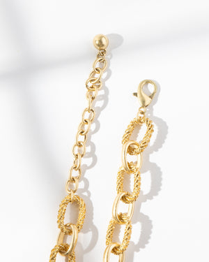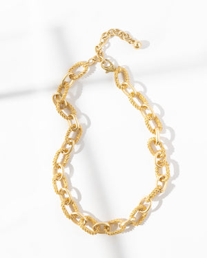 Make a bold statement with this chunky gold-plated necklace that perfectly balances edge and elegance. Glamorous, textured links catch the light with every move — because subtle was never your style.