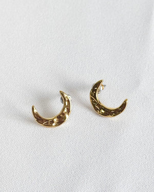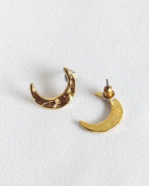 Tiny moons, major glow. These hammered crescent studs bring just the right amount of shimmer for everyday wear.
