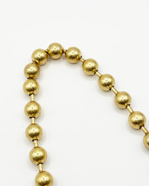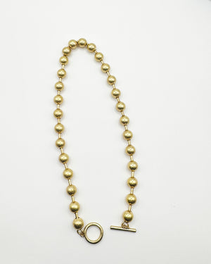 Elegant yet understated, this 16K gold plated necklace features round brass beads delicately separated by tiny bars for a refined rhythm. Finished with a toggle clasp, it’s a timeless piece that adds effortless sophistication to any look.