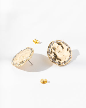Make a bold statement with these 16K gold plated earrings, where molten texture meets a halo of dazzling crystals. Glamorous, artsy, and unapologetically chic — they’re the ultimate conversation starters.