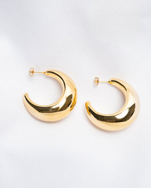 Bold, sculptural, and unapologetically chic—these crescent-shaped hoops are made to make a statement. Their curved silhouette adds a modern edge to any look, while the high-shine gold finish keeps things glam. Whether you're dressing up for a night out or leveling up your daywear, these earrings are your power piece.