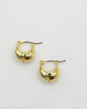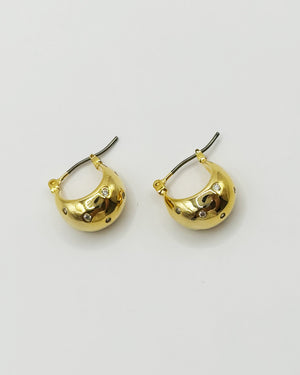 Say hello to your new statement mini hoops. The Aziz Earrings combine bold curves with delicate crystal accents, giving you the perfect mix of shine and edge. A go-to piece when your look needs a little extra pop.