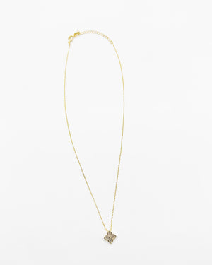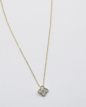 This 18K gold-plated pendant necklace blooms with elegance, featuring a delicate flower pendant crafted from shell and accented with a sparkling zirconia at its center. Finished with a secure lobster claw clasp, it’s the perfect blend of timeless charm and modern grace.
