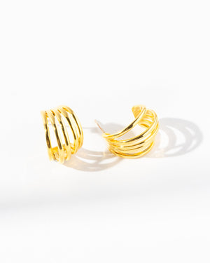 Make a bold yet effortless statement with these sculptural 18K gold-plated hoops that redefine everyday glam. Their layered design catches the light and attention wherever you go!