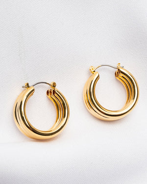 Three times the hoops, triple the bold — these 18K gold plated brass earrings are your shortcut to effortless glam. With their stacked tube design, they bring everyday edge with a side of golden drama.