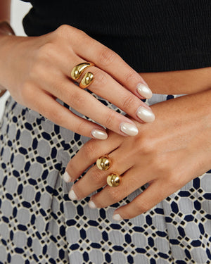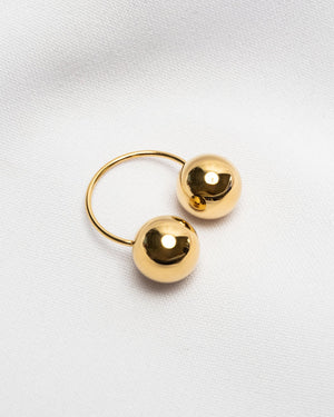 This singular earring features a dual ball design. Gold tone and classic, this incredible statement piece is a great addition to any ensemble.