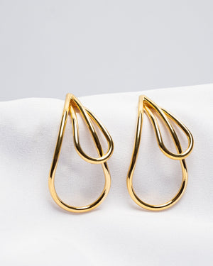 Make heads swirl with these mesmerizing 18K gold plated drop earrings, where a pear-shaped frame elegantly cradles a smaller pear-shaped swirl within. Light-catching and fluid in form, they add a playful twist to your day-to-night look!
