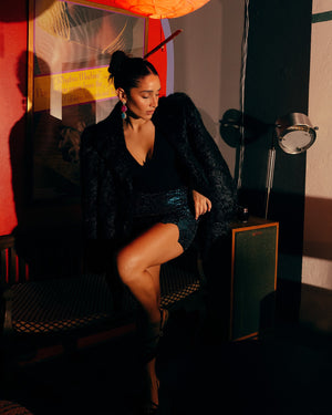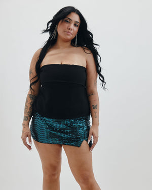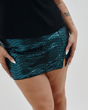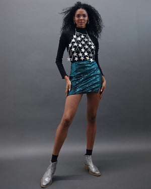 This adorable, mermaid inspired skirt features sequined, scalloped design. Donning a bright green color and a mini skirt length, this trendy piece is one you'll love showing off.
