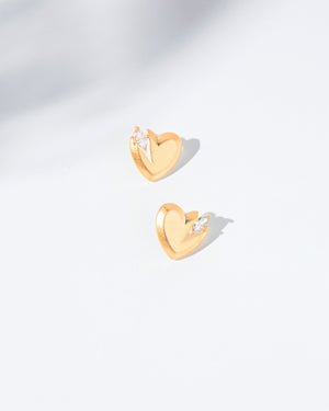 Show off your love in style this Valentine's Day with this stunning pair of studs! Shaped like a heart, these earrings come studded with dazzling marquise-shaped cubic zirconia that makes them shine with every movement.