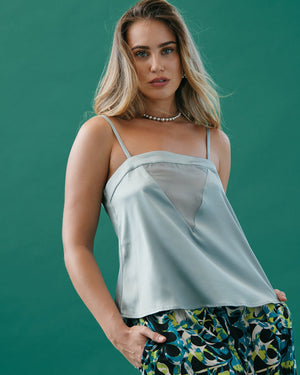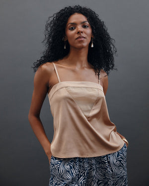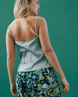 This satin beauty features a square neck design with a sleeveless style. Skinny straps and a flowing bodice make for elegance and timeless beauty that is versatile and comfortable.