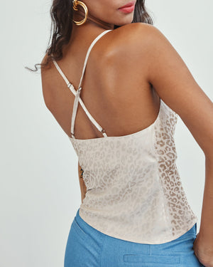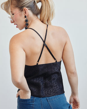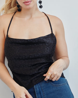 Wrap yourself in silky satin like the goddess you are with this slip top. Designed with a scoop neckline, adjustable spaghetti straps, and subtle self-design, this top is here to take you from day to night with ease.