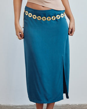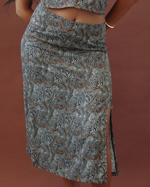 Float through your day in this dreamy midi skirt featuring a high-rise waist and a flirty side slit. The breezy, flowy silhouette paired with a muted paisley print makes it perfect for turning heads with understated elegance.