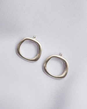 Blend sculptural style with every day wearability. With their organic, asymmetrical open shape and matte silver finish, these hoops offer a modern take on a classic silhouette—bold enough to stand alone, subtle enough to mix and match.