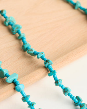 This turquoise beaded necklace features a long strand. Layer or keep as a long focal point for any occasion. Irregular beads make for a lovely, asymmetrical appeal.