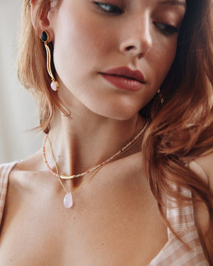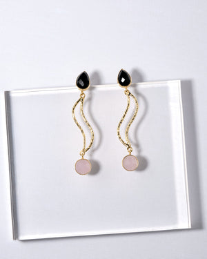 Add a touch of elegance with these dazzling drop earrings, featuring a gold-framed pear-shaped genuine stone that cascades into a curved drop holding a sparkling round gem. Perfect for days when you want to turn up the glam!