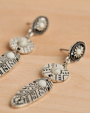 Dripping with vintage charm, these oxidized drop earrings flaunt intricate motifs that frame a luminous acrylic bead at their core. A little bit boho, a little bit bold — they’re the perfect finishing touch for your effortlessly chic vibe!