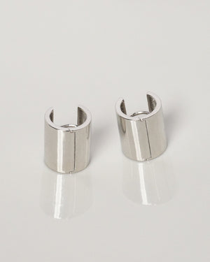 These unique earrings offer an elongated huggie appeal. Featuring a silver tone design and a hammered metal look, these bold and beautiful earrings are perfect for making a statement.
