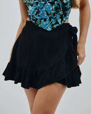 This gorgeous high waisted skirt features a beautiful ruffle throughout. Mini length and accented with a side tie, this flowy and adorable skirt is perfect for any occasion.