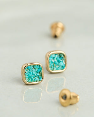 Add a pop of shimmer to your style with these sleek square-framed studs, featuring a dazzling colored shell at the core. With their modern shape and ocean-kissed glow, they are like little treasures for your lobe!