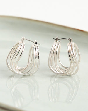 These medium sized hoops offer a fun wave appeal with layered waves going through. A silver tone set of beauties, you really can't go wrong!