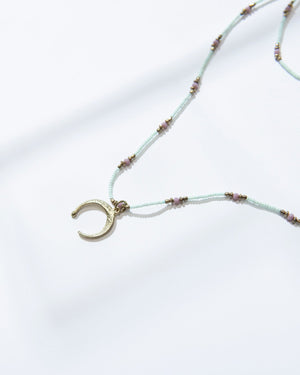 A long beaded necklace featuring a charming pendant — perfect for layering over a plain T-shirt.