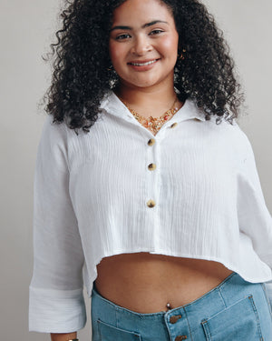 Effortlessly cool and perfectly undone, this button-down crop top features a relaxed fit and textured fabric for ultimate laid-back vibes. It’s the versatile staple your high-waisted skirts have been waiting for, taking you from a beachside brunch to a sunset stroll with ease.