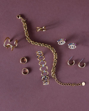 Bold and intricately woven, this 18K gold-plated stainless steel chain bracelet brings a touch of edge with timeless shine. Designed to stand out yet versatile enough for daily wear, it’s your new power piece for stacking or solo styling.