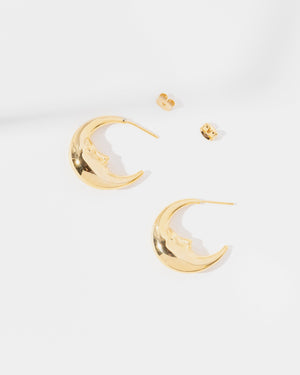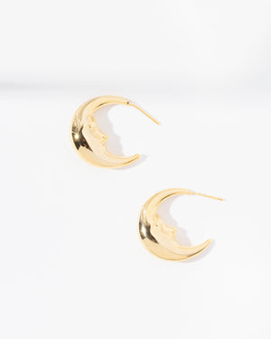 Bring a little lunar magic to your look with these 18K gold plated moon earrings, complete with charming face, eyes, and a smile. Finished with a secure push backing, they’re a playful way to glow day or night.