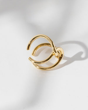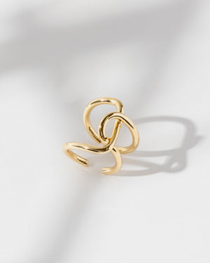 Twist and shout for this effortlessly cool ring! Its unique, interwoven design is plated with 16K gold, making it the perfect statement piece to add a touch of playful luxury to your jewelry collection.