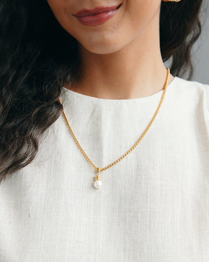 Timeless with a twist, this 18K gold-plated chain necklace features a lustrous freshwater pearl pendant that makes elegance look effortless. Dress it up or down—this piece brings just the right amount of shine and sophistication to every outfit.