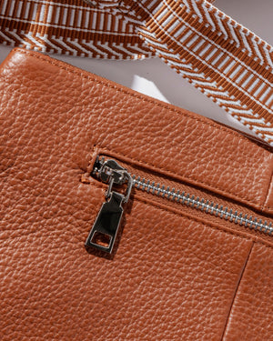Chic and versatile, this leather purse with a secure zipper closure and bold patterned strap is made to carry your essentials in style. Whether slung crossbody or carried by hand, it’s the perfect mix of casual cool and everyday elegance!