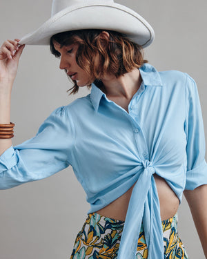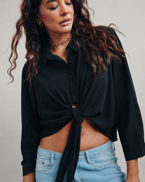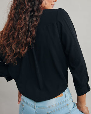 The crisp white shirt gets a sexy upgrade with a front-tie detail and relaxed, rolled sleeves for effortless charm. Chic, flirty, and endlessly versatile, it’s perfect for dressing up denim or adding polish to your everyday looks!