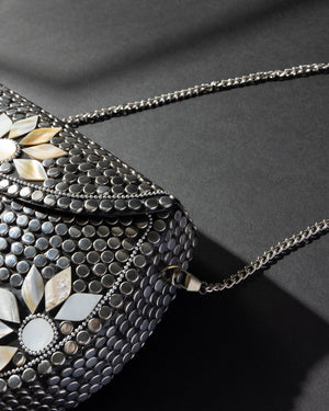 This metal box purse is basically wearable art, featuring mosaic-style floral inlays that guarantee compliments from across the room. Sling it over your shoulder and let your outfit do the talking — preferably something that says yes, I sparkle on purpose.