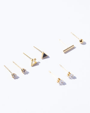 Why settle for one style when you can have them all? This playful set of stud earrings — featuring a classic bead, a sparkling zirconia, a chic epoxy triangle, and more — lets you mix, match, and slay every vibe, every day!