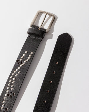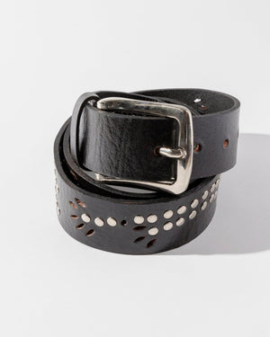 Rock your style with this leather belt, accented with silver studs in a cool swirling floral pattern. Tough yet trendy, it’s the perfect accessory to add a little edge to any outfit!
