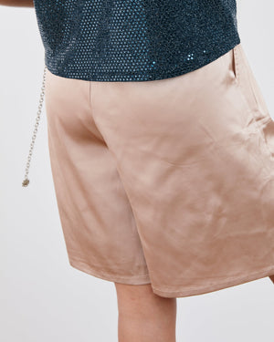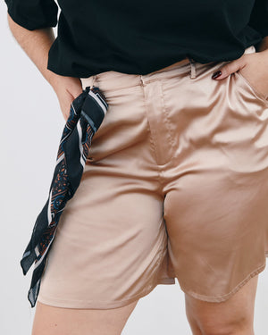 Stay cool and chic in these high-rise Bermuda shorts featuring a sleek buckle and zipper closure. With roomy side and back pockets and wide legs for that relaxed vibe, they’re your go-to for effortless summer style.