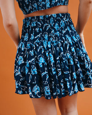 Bring the fun with this flirty mini skirt featuring a bold abstract print, a smocked waist, and tiered ruffles that move with you. Perfect for dancing, brunching, or just turning heads wherever you go!