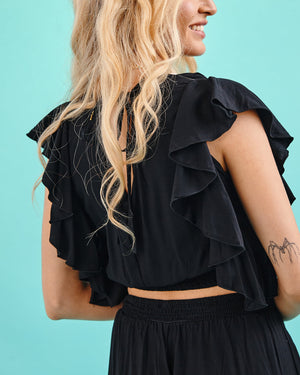 Light, flowy, and effortlessly feminine, the Erman Crop Top brings soft movement and modern elegance to your everyday style. Designed with cascading ruffle sleeves and a flattering deep V neckline, this top adds just the right touch of drama while staying breezy and comfortable.