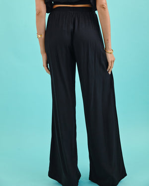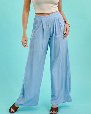 Featuring a flattering high-rise waist and fluid wide-leg silhouette, these pants create an elongated shape that feels both comfortable and elevated. Soft pleating at the front adds subtle structure, while the lightweight fabric drapes beautifully for an easy, breezy finish.