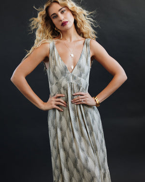 This flowy maxi dress brings effortless elegance with its soft drape and subtle print that moves beautifully with every step. Finished with a sleek back zipper, it’s the perfect throw-on piece for days when you want to look amazing with zero effort.