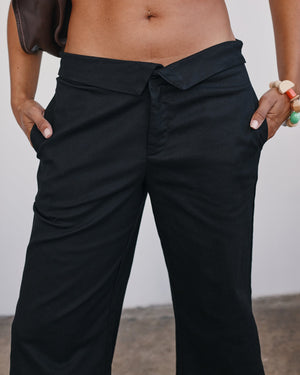 These extra wide legged pants feature an ultra-high waist and a comfy, flowing bodice.