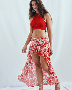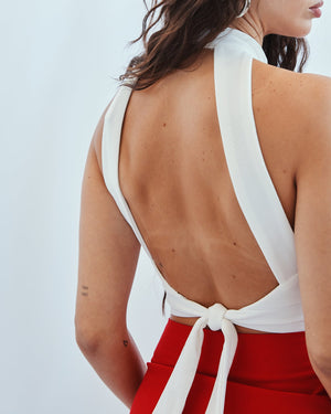 Highlighted by the cut-out at the center of the chest, this halter crop top is a great pick for your next night out.