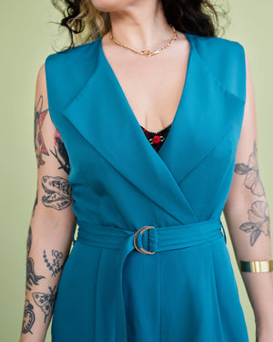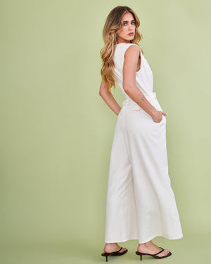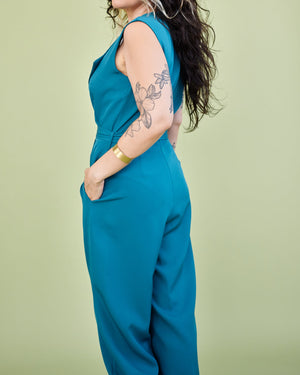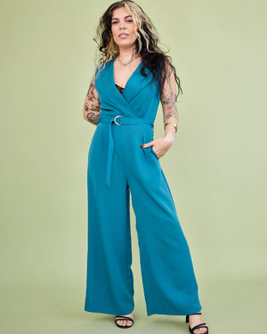 Meet your new power piece — this sleek jumpsuit is where effortless tailoring meets everyday chic! Designed with a sharp wrap-style neckline and a flattering tie waist, it cinches you in all the right places while keeping things polished. The clean silhouette flows beautifully, while the back zipper ensures a seamless fit from every angle. Perfect for desk-to-dinner dressing with a confident, modern edge.