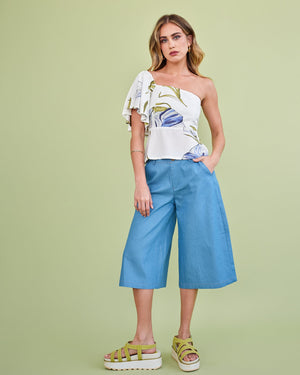Add a playful twist to your wardrobe with this flirty one-shoulder top featuring a breezy silhouette and a statement sleeve. A perfect mix of chic and carefree! Pair it with your favorite bottoms for an effortlessly cool, sunshine-ready look.