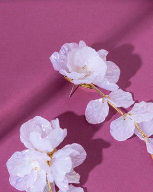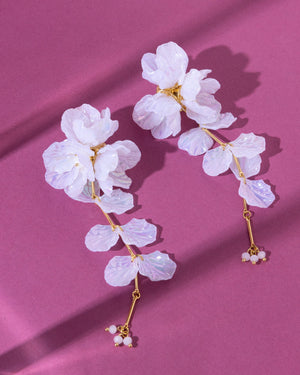 These dreamy dangle earrings bring a full-on fairytale moment with their cascading iridescent petals and delicate floral centerpiece. They sway with every step, catching light like magic and instantly turning any outfit into a “stop-and-stare” moment. Perfect for weddings, parties, or whenever you feel like being the main character!